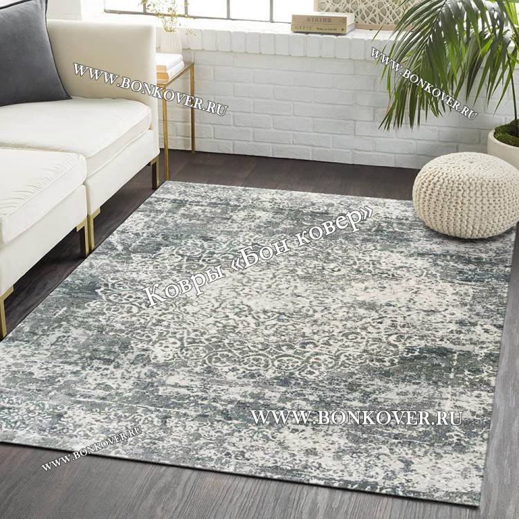 Элегантный Ковер для гостиной Арт 28930 Серый с зеленым наполняет интерьер помещения теплом и уютом, гармонично сочетает в себе изящество и стиль. Он создан из современных материалов, комфортный и долговечный.