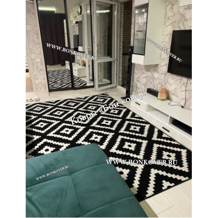 Ковер скандинавский черно-белый станет идеальным дополнением интерьера, оформленного в современном или классическом стиле. Мягкое, но прочное, ковровое изделие обеспечивает тепло- и шумоизоляцию, отличается длительным периодом эксплуатации, надежностью, экологичностью и высокой износостойкостью, является отличной гарантией от повышенной влажности в помещении и утеплителем для холодного пола. Благодаря качеству материалов, ковер не деформируется, сохраняет первоначальный вид под тяжестью предметов мебели. За его поверхностью легко ухаживать.