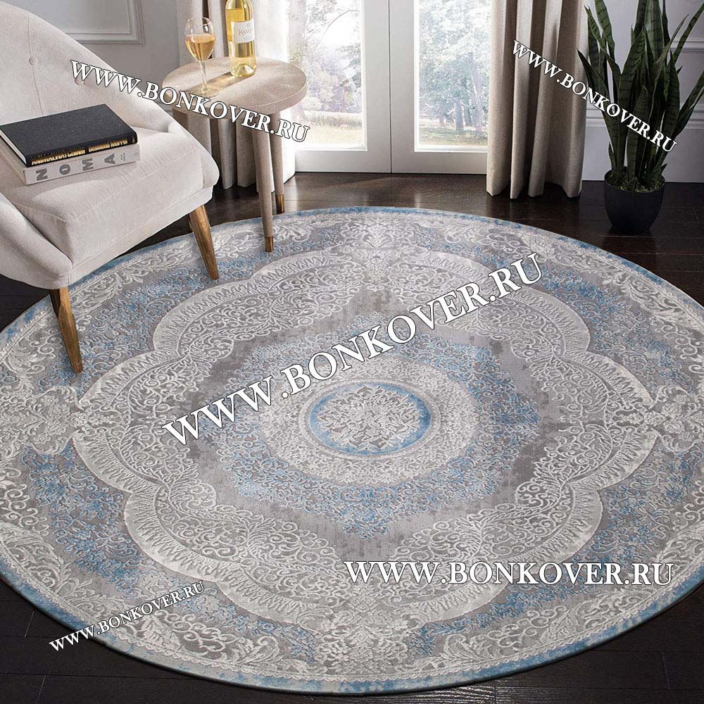 Турецкий Ковер Для Гостиной Дизайн 33 Синий с Серым Круг станет великолепным преображением вашей комнаты, подчеркивая высокий статус владельца.